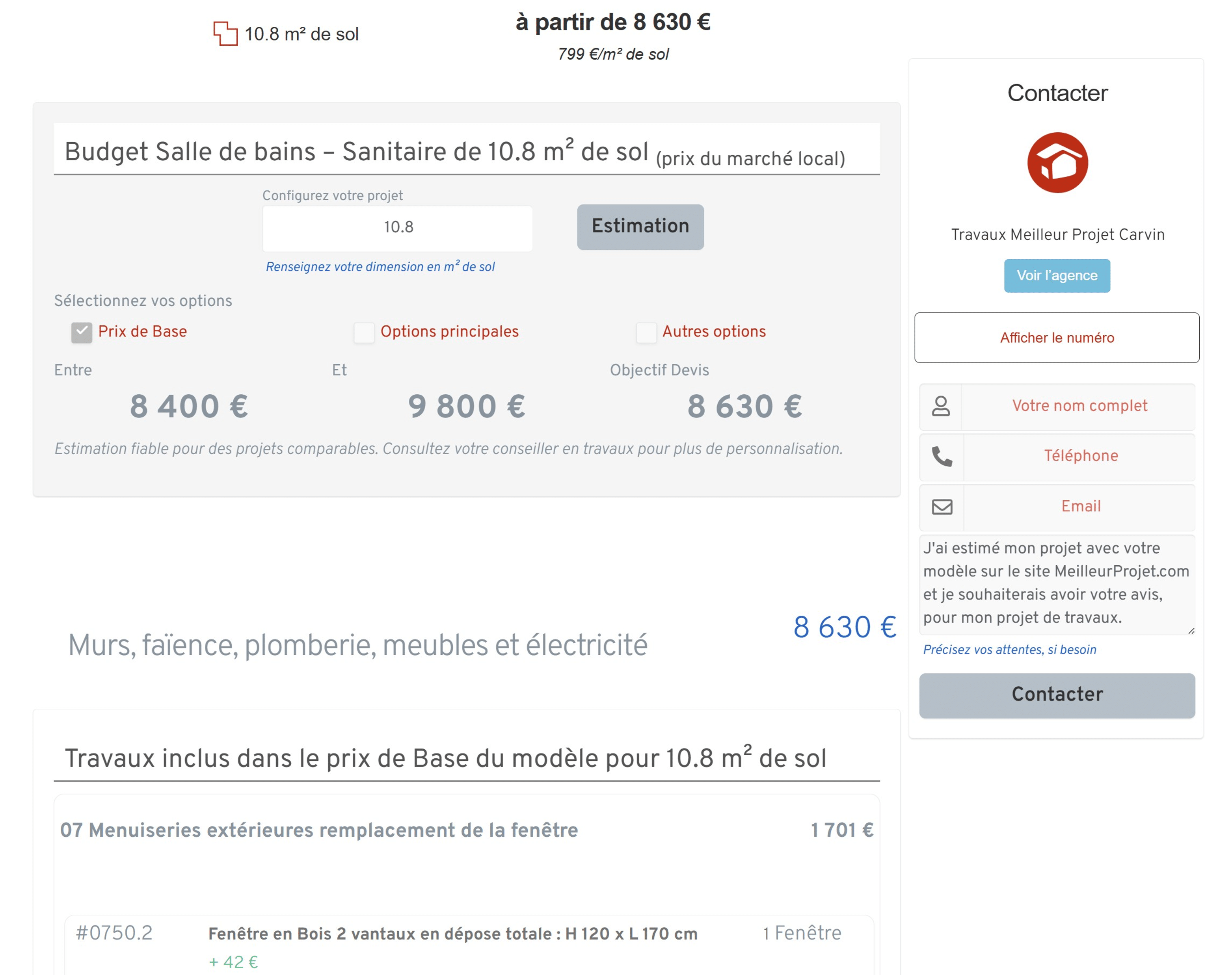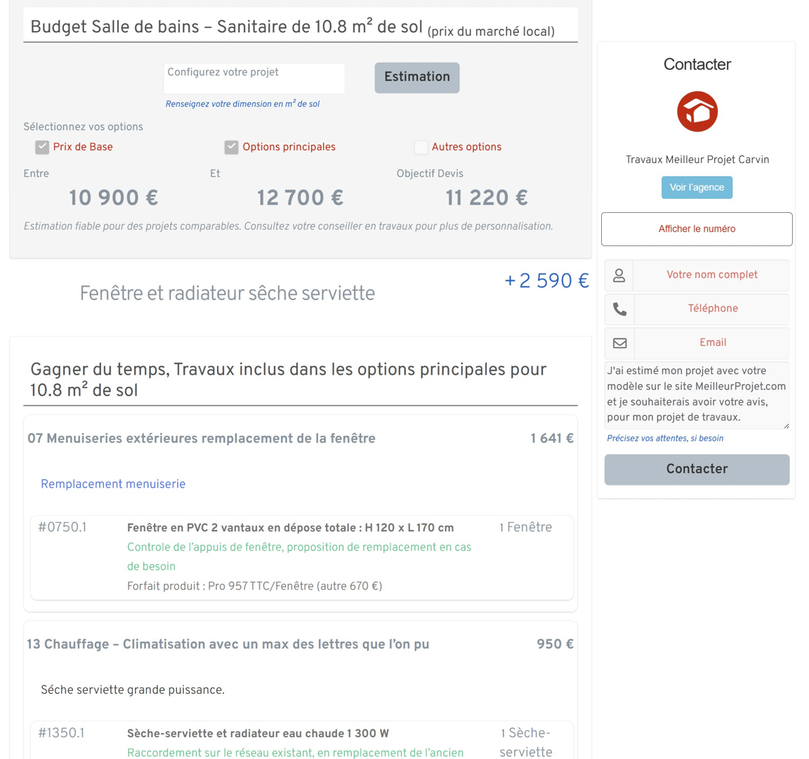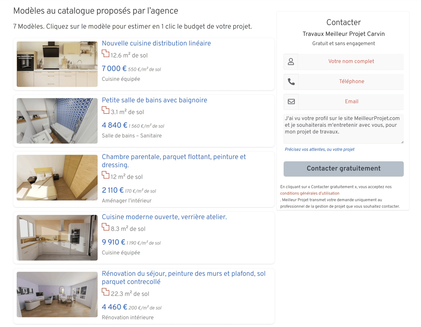 Proposez plutôt des modèles, comme dans un catalogue digital, ou le visiteur pourra choisir un design et avoir une estimation personnalisée immédiatement en 1 clic. Le visiteur passe du curieux à un prospect qualifié et lui donnera sans aucun doute l’envie de vous solliciter.