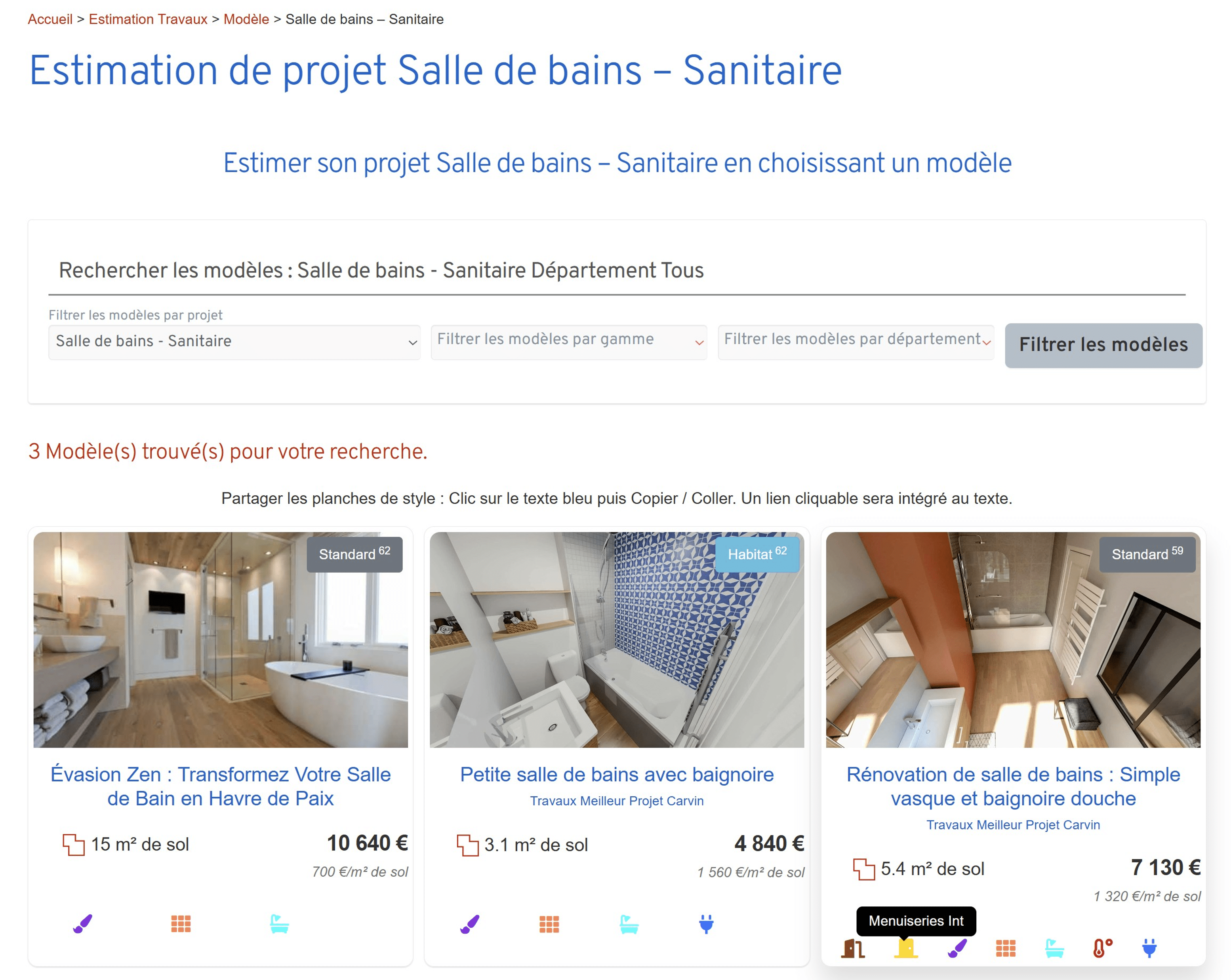 • Lien direct à chaque modèle pour une estimation personnalisée.