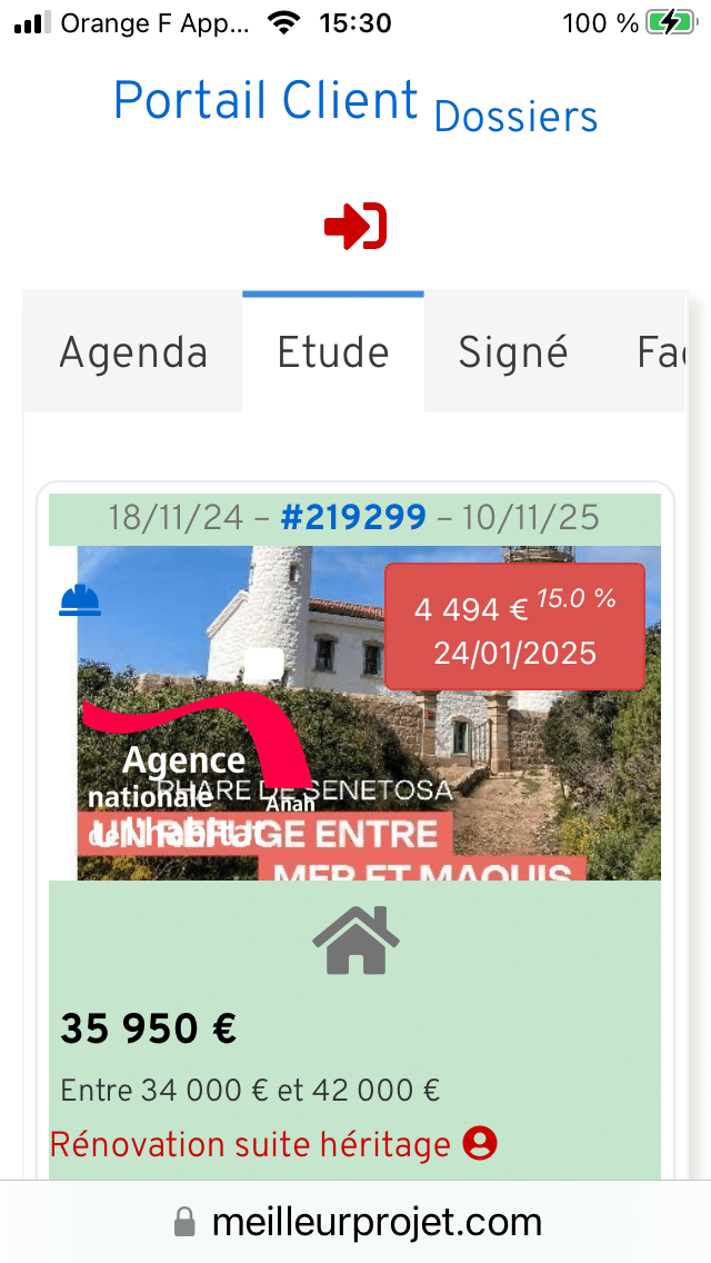 - Onglet Signé : Dossiers avant cession aux artisans.