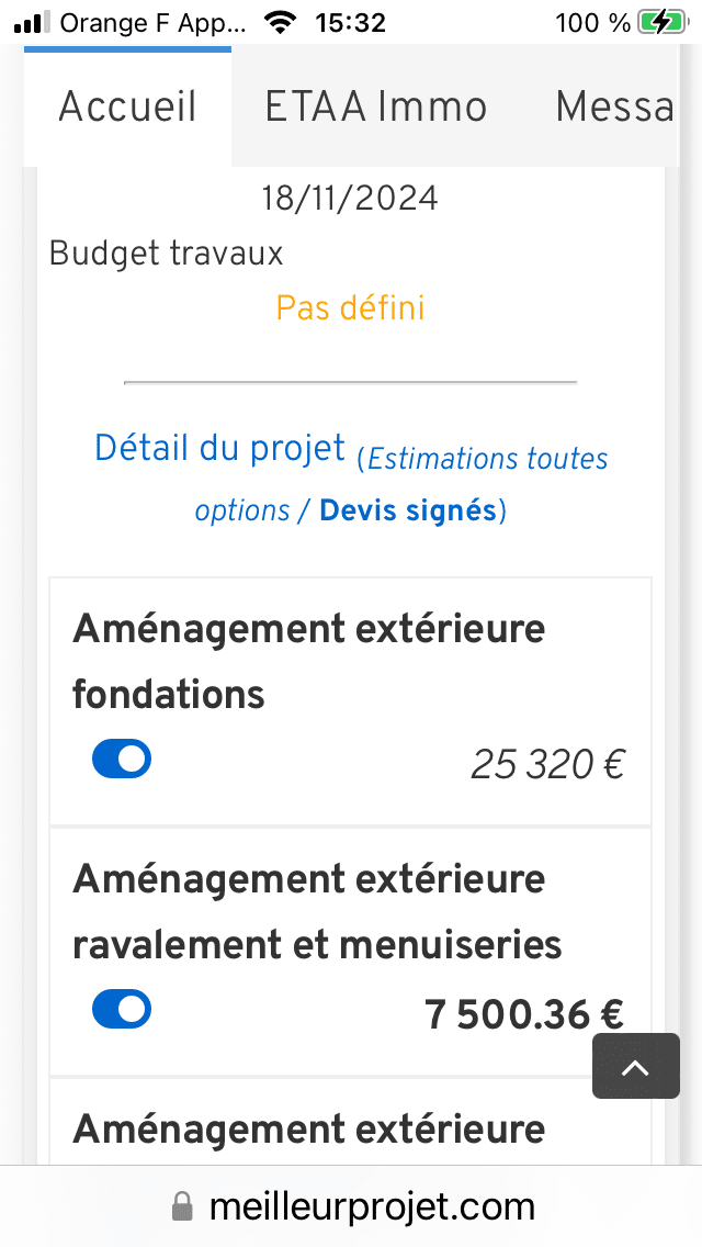 - Démarrage prévisionnel des travaux sous réserve, notamment de la date de signature des devis.