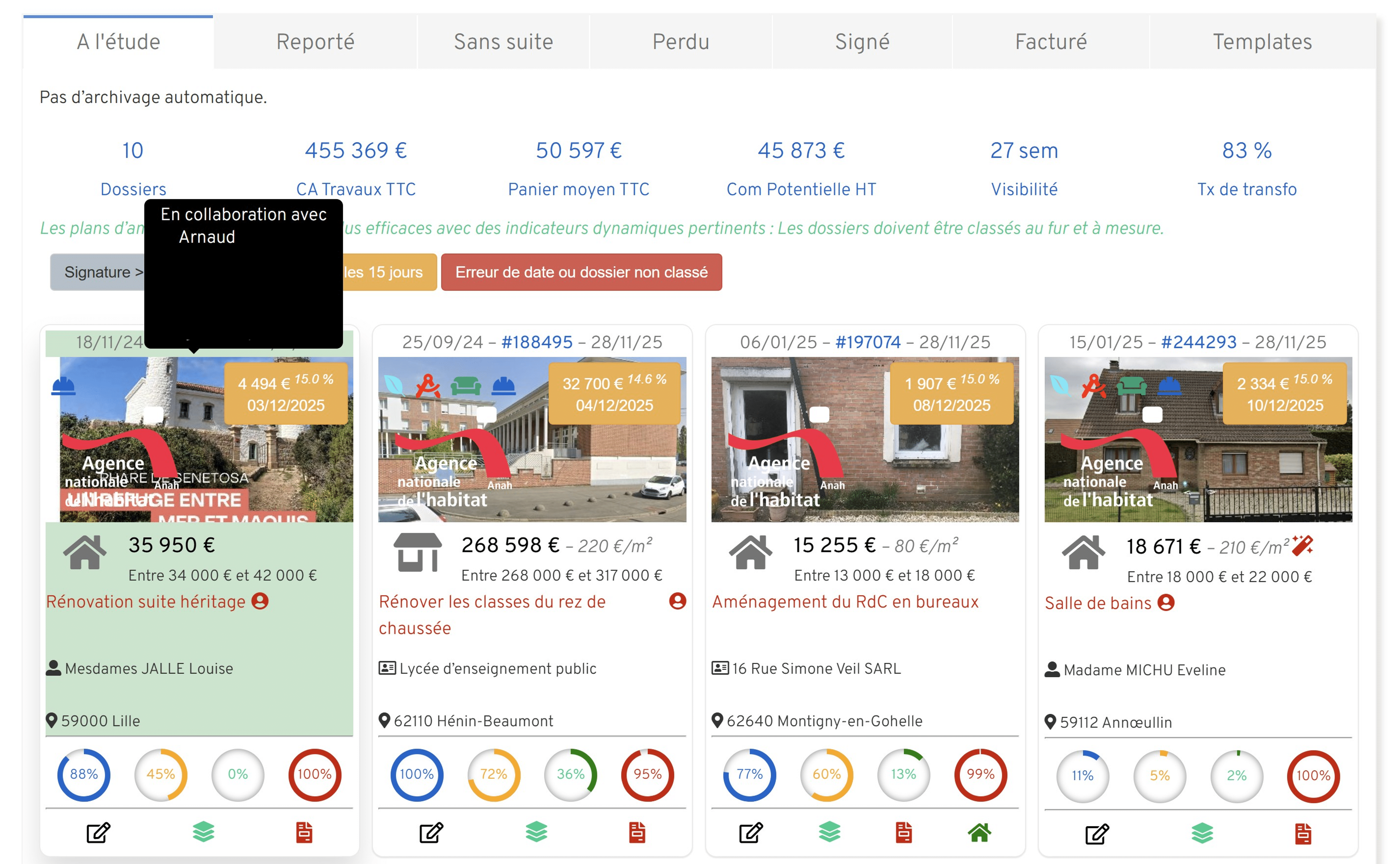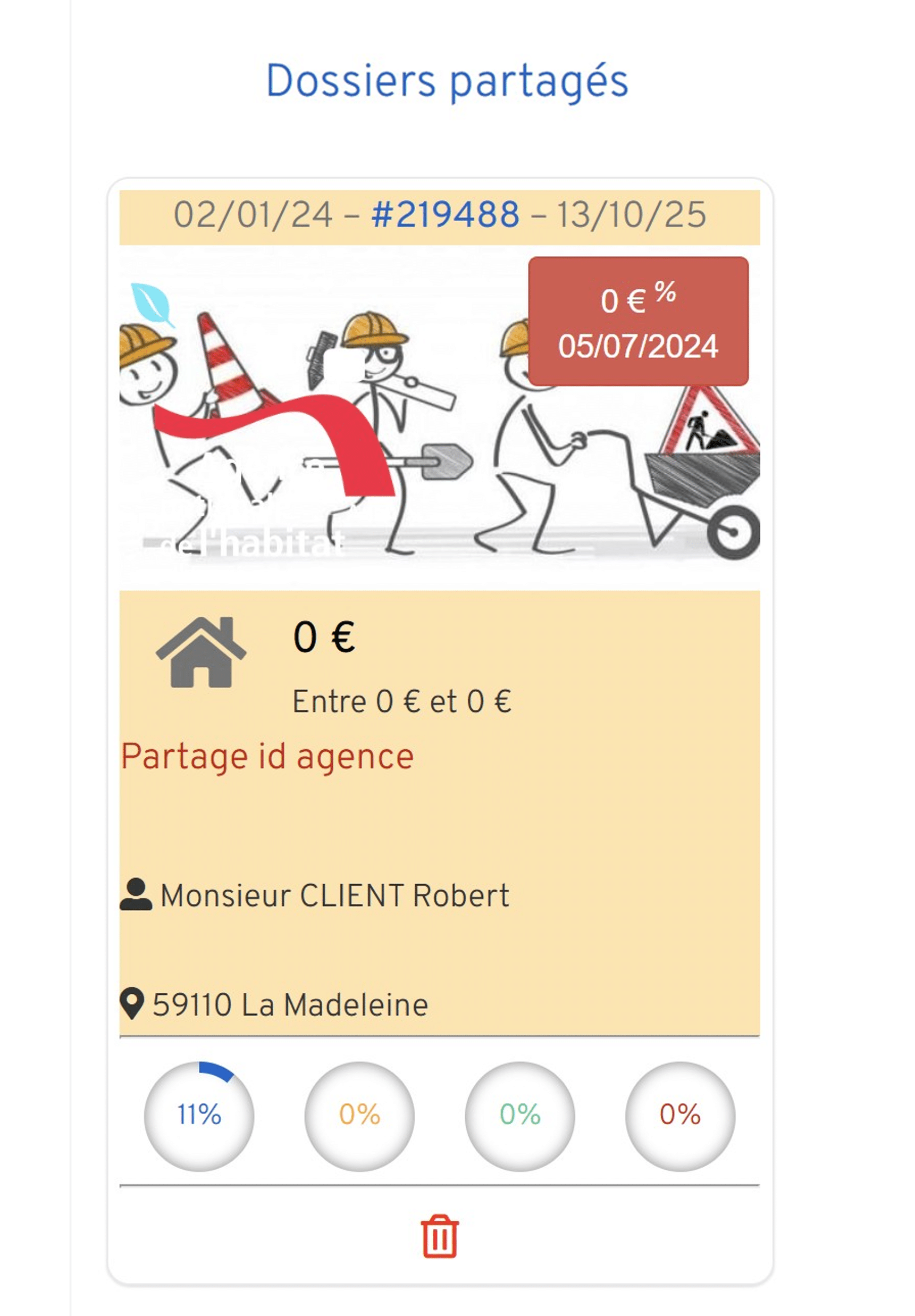 • La carte client ornée d’un fond vert permet d’identifier immédiatement les dossiers partagés.